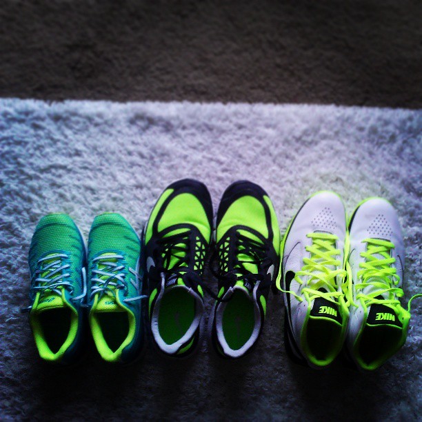 I'm not the only one with cool neon shoes in this household- Michael's running and basketball shoes are SUPER bright too!